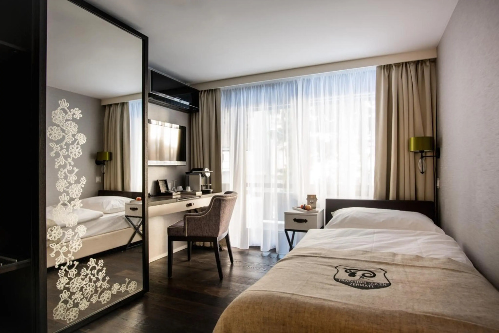 Zermatt liegt in einer autofreien Zone. Die Zufahrt mit Privat-Pkw ist nur bis zum Dorf Täsch gestattet. Informationen zu den Anreisemöglichkeiten finden Sie auf der offiziellen Website der Stadt. Obligatorische Galadinner-Gebühren können in Schweizer Hotels gelten. Gäste sollten direkt beim Hotel weitere Informationen anfragen. Front desk opening hours 07:00 - 22:00. If the guests arrive after 10:00 PM, they should notify the hotel in advance and receive check-in instructions. Contact details can be found on the booking confirmation. Zermatt is in a car-free zone and can be reached only by train. The Alpenhof Zermatt will be closing 20 Alpine Chic rooms for renovations from 22nd September to mid-December 2025. No guests will be accommodated in this area during the works. Scaffolding will be visible on the facade, and while there may be light noise disturbance between 09:00 AM and 06:00 PM, it is expected to be minimal. Please note that the restaurant, spa, and bar will remain fully operational throughout the renovation period.